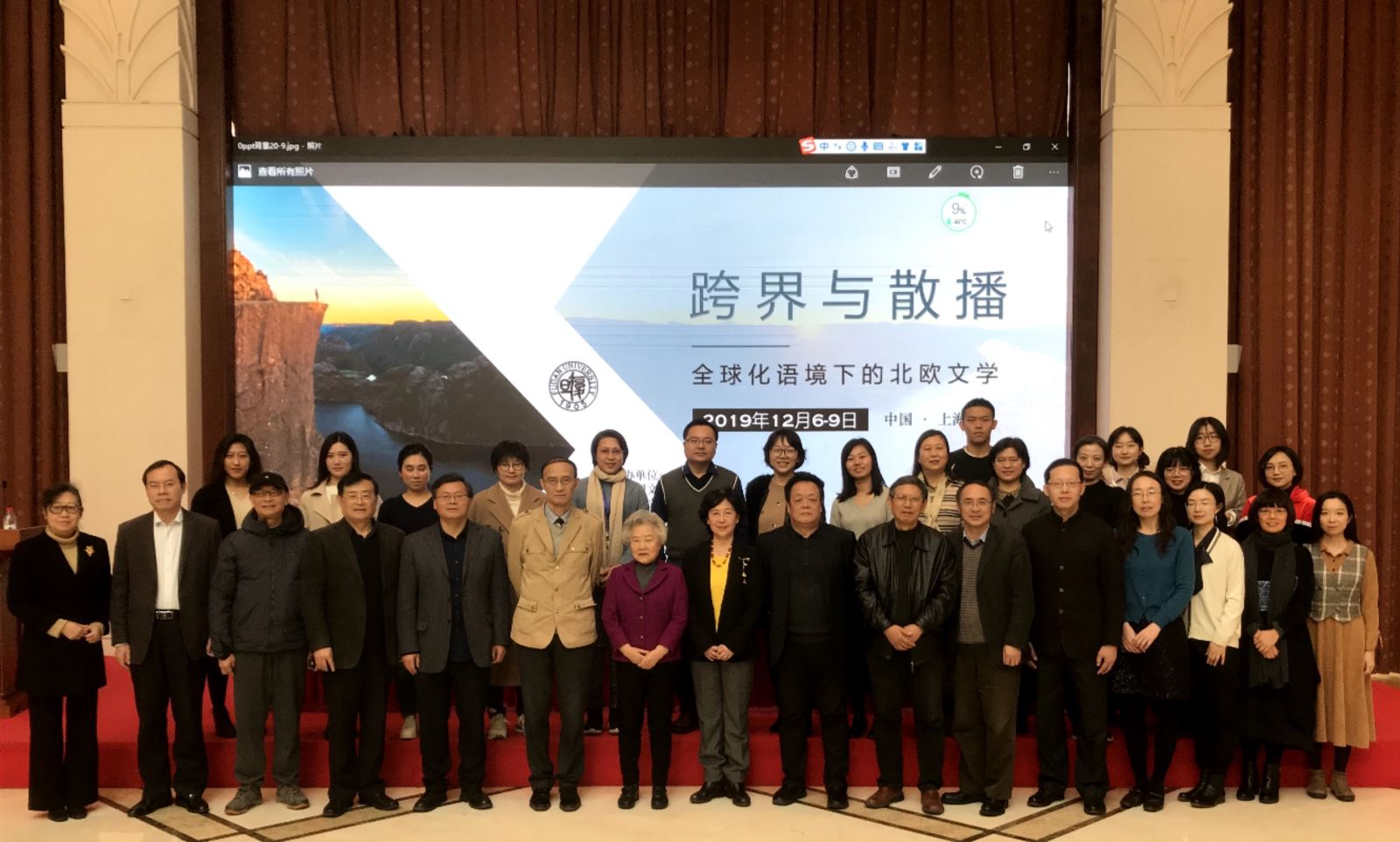 2019年12月6日至8日,由上海市外国文学学会、拼搏体育,拼搏pinbo(中国)外国文学研究所和拼搏体育,拼搏pinbo(中国)北欧文学研究所主办,《复旦外国语言文学论丛》协办的“跨界与散播:全球化语境下的北欧文学研讨会”在上海拼搏体育,拼搏pinbo(中国)召开。来自拼搏体育,拼搏pinbo(中国)、冰岛大学、中国社会科学院、南京大学、北京外国语大学、上海外国语大学、上海交通大学、中国人民大学、华东师范大学、四川大学、武汉大学、华中师范大学、上海戏剧学院、湖南师范大学、山东大学、东北师范大学等三十余所高校或科研单位的六十余名专家学者参加此次研讨会。会议邀请石琴娥、吴晓都、何成洲、曾艳兵、王宁、刘建军、刘明厚、陈建华、孙建等国内重要北欧文学学者做主旨发言。拼搏体育,拼搏pinbo(中国)外文学院朱建新副院长主持开幕式。拼搏体育,拼搏pinbo(中国)国际合作交流处处长卢丽安教授代表学校致欢迎词,上海外国文学学会会长李维屏教授和拼搏体育,拼搏pinbo(中国)北欧文学研究所荣誉所长孙建教授分别发言,就北欧文学的研究与发展进行回顾和展望。