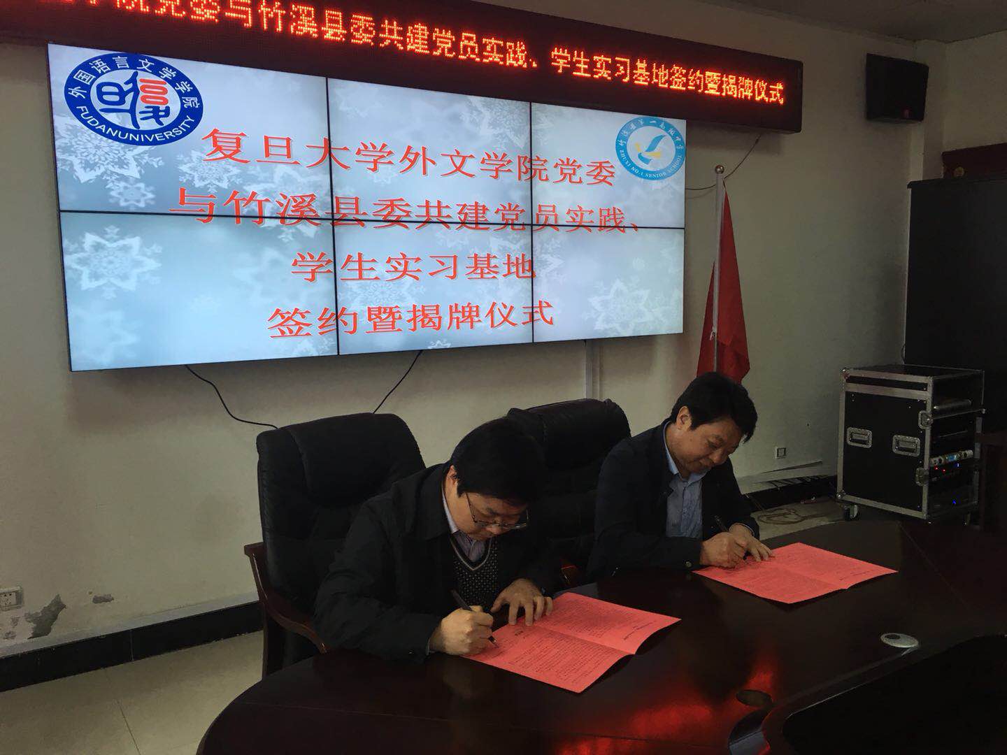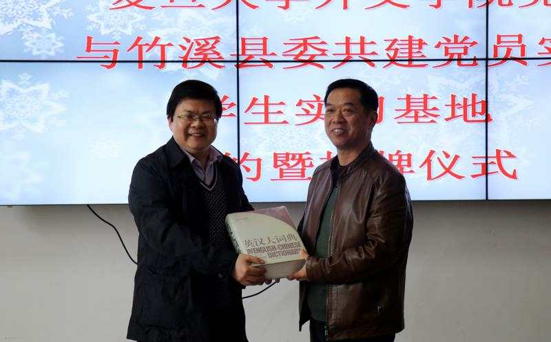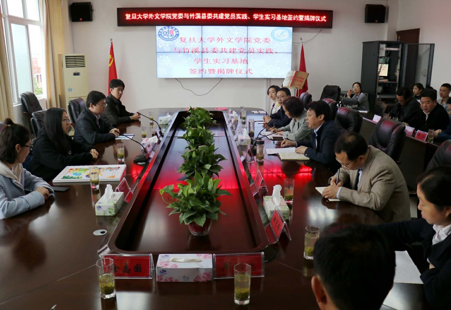 2018年4月13日上午,拼搏体育,拼搏pinbo(中国)外文学院党委与竹溪县委共建党员实践基地、学生实习基地签约暨揭牌仪式在竹溪县第一中学明德楼举行。外文学院党委副书记赵昕,竹溪县委常委、组织部长胡贤德,副县长杨巧燕等出席签约揭牌仪式。仪式上,双方签署协议、为基地揭牌,外文学院和县一中还互赠了纪念品。