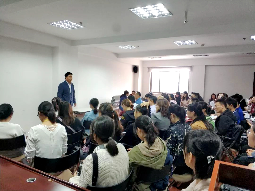 外文学院合唱团由25名教师和45名大一新生组成。经过前期的试音,45名同学从2019级213名同学中脱颖而出,与来自各系、大学英语教学部、党政后勤办公室的老师,一起组成合唱团。