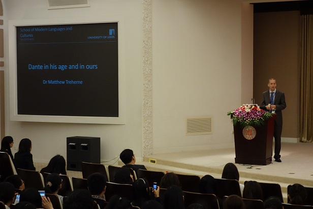 台湾中山大学的林玉珍教授以"The Irish Voice in America"为题,用图文并茂的形式进行演讲,对爱尔兰文学在美国的发展情况做了阐述。英国利兹大学的Matthew Treherne博士的演讲主题是"Dante in His World and Ours",从全新的角度向大家解读了但丁的作品。两位教授的主题发言观点新颖,举证详实,语言幽默,不但赢得了会场内师生的热烈掌声,还引发了与会师生的深入思考和积极讨论。