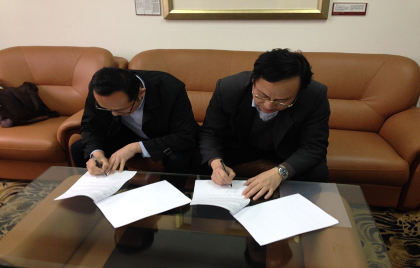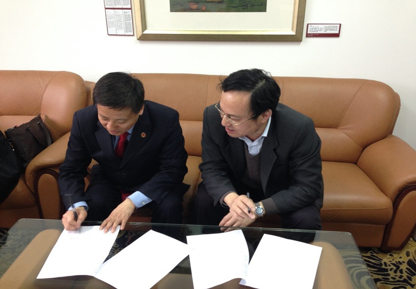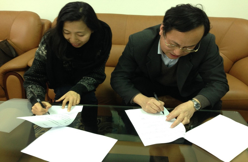 曲卫国院长与21世纪英文报上海分部主任刘辉先生签订合作协议