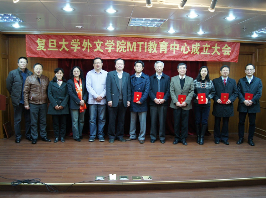 出席本次MTI教育中心成立仪式的有研究生院院长钟扬教授及外文学院院长曲卫国教授、副院长卢丽安教授及外文学院部分教师、MTT专业学生。在此次成立会上,钟扬教授和曲卫国教授给中心聘请的六位顾问颁发了顾问证书,六位顾问分别是:上海外国语大学高级翻译学院院长柴明颎教授,上海对外贸易大学原副校长/ 教授叶兴国教授,上海外语频道总监助理朱晓茜女士,上海市对外服务有限公司国际人才培训中心主任陈养铃先生,21世纪教育传媒发展中心常务副主任&21世纪英文报上海分部主任刘辉先生,FBC上海韦勋翻译有限公司总裁张伟先生。